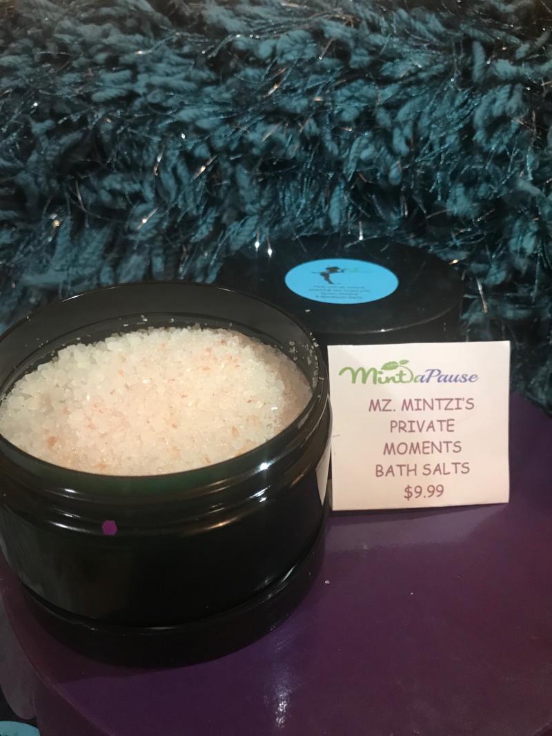 BATH SALTS FOR YOUR PRIVATE MOMENTS IN A NICE TUB OF WATER. MADE WITH EPSON, MINERAL AND HIMALAYAN SALTS WITH A MIXTURE OF ESSENTIAL OILS FOR RELAXING AND COOLING.